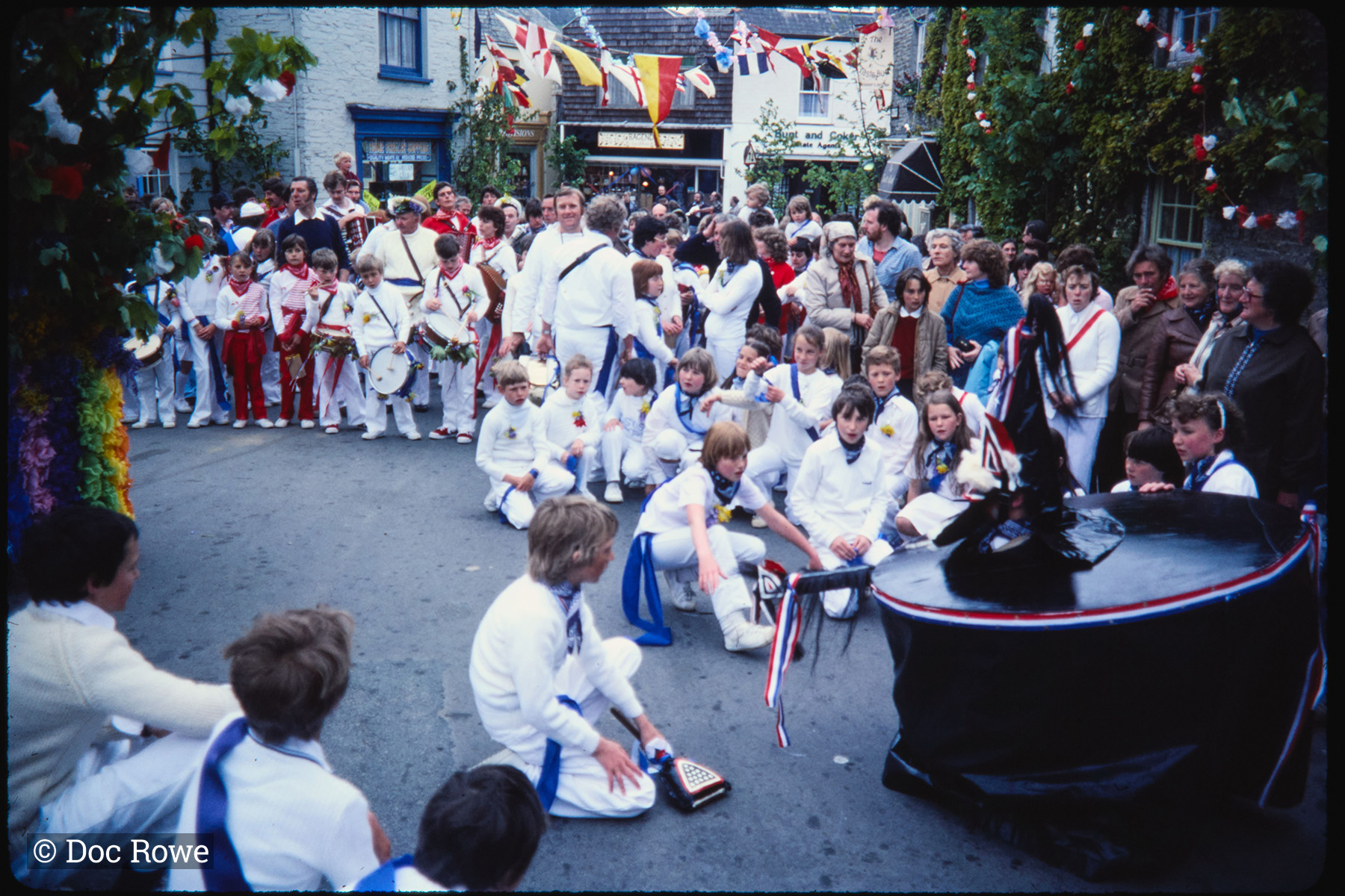 Date 1 May, 1982 Location Broad Street Subjects Blue Ribbon Oss Maypole Children's Oss Clucky Teaser Club Old Oss Kids People Sam Harris Jack Cribbens Pat Cribbens Desmond Pook John Harris Alan Honey Rosemary Semmons