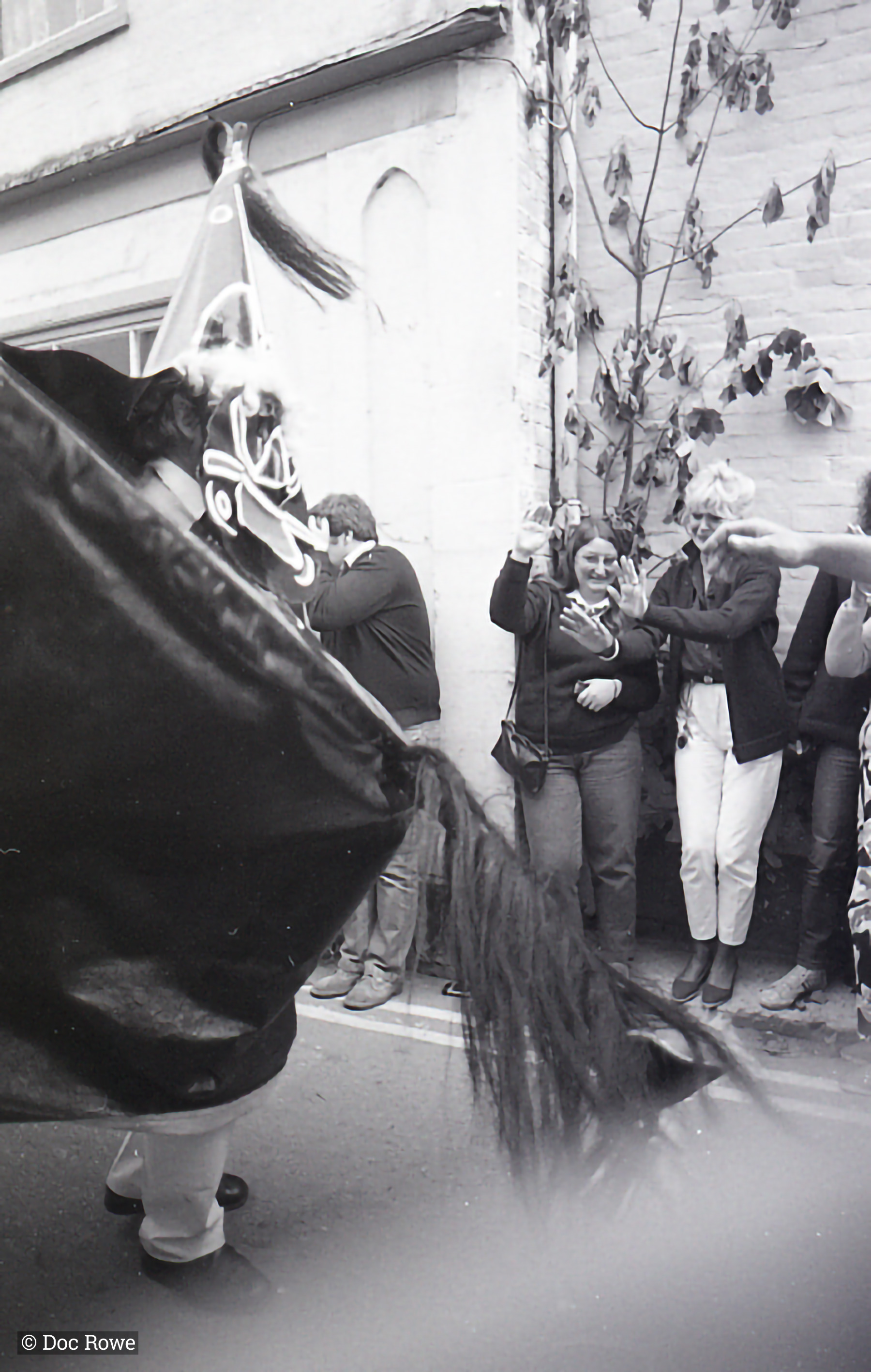 Old Oss in street, being waved at