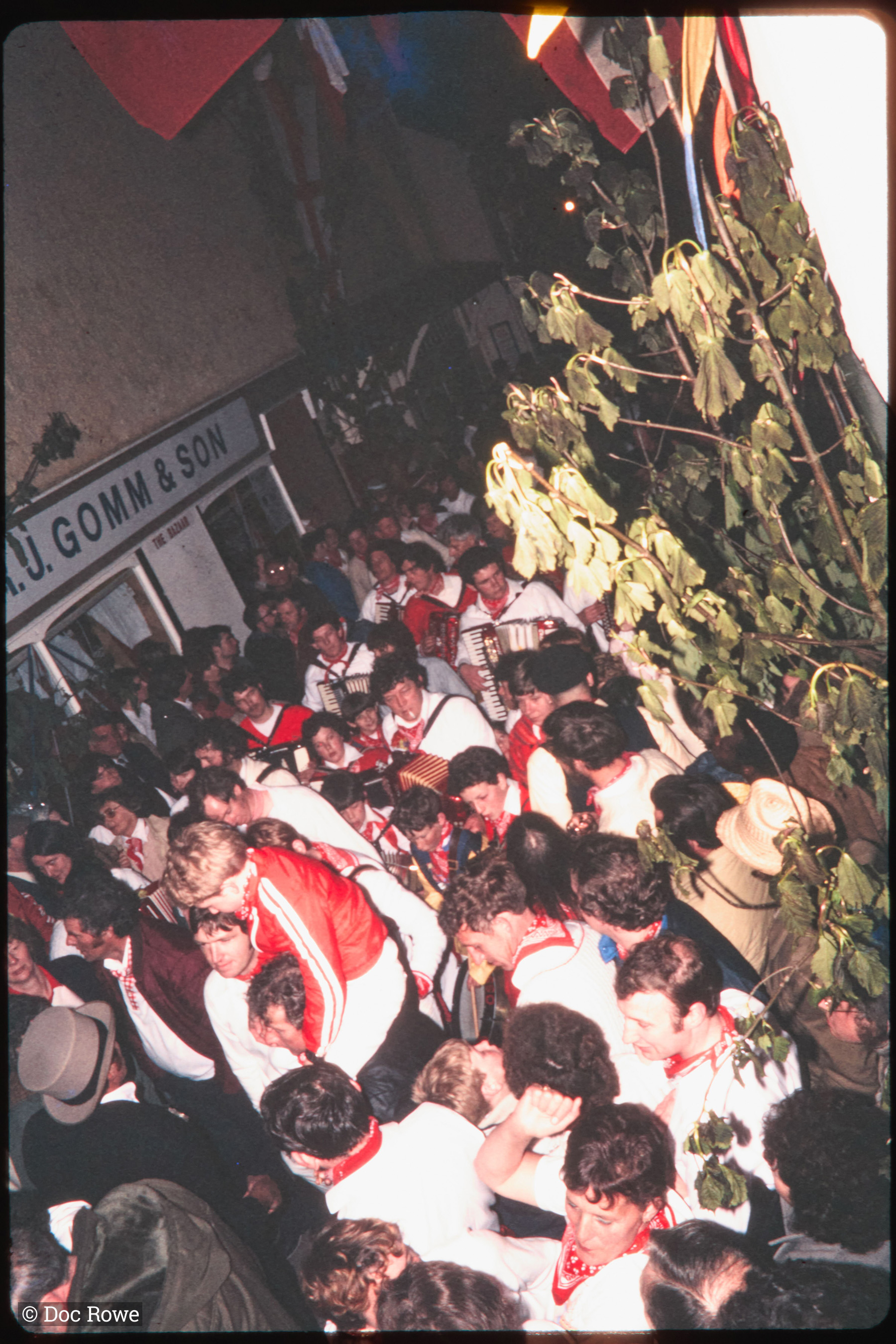 Procession in very crowded Lanadwell street at night
